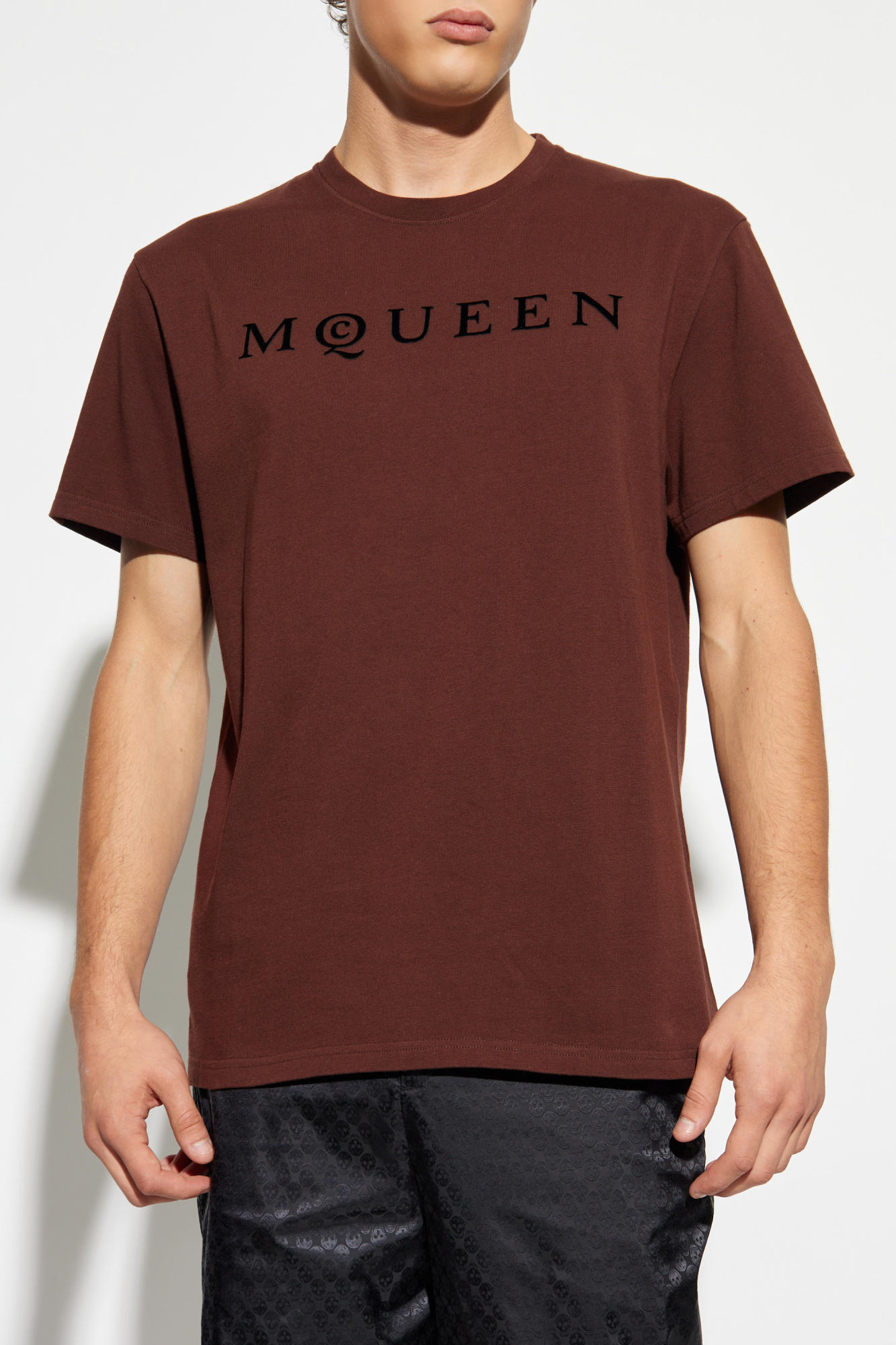 Alexander McQueen T-shirt with a logo and a velvety finish