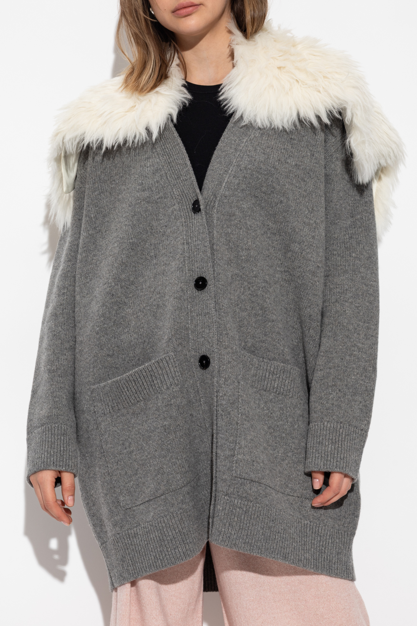 JIL SANDER Cardigan with detachable faux fur