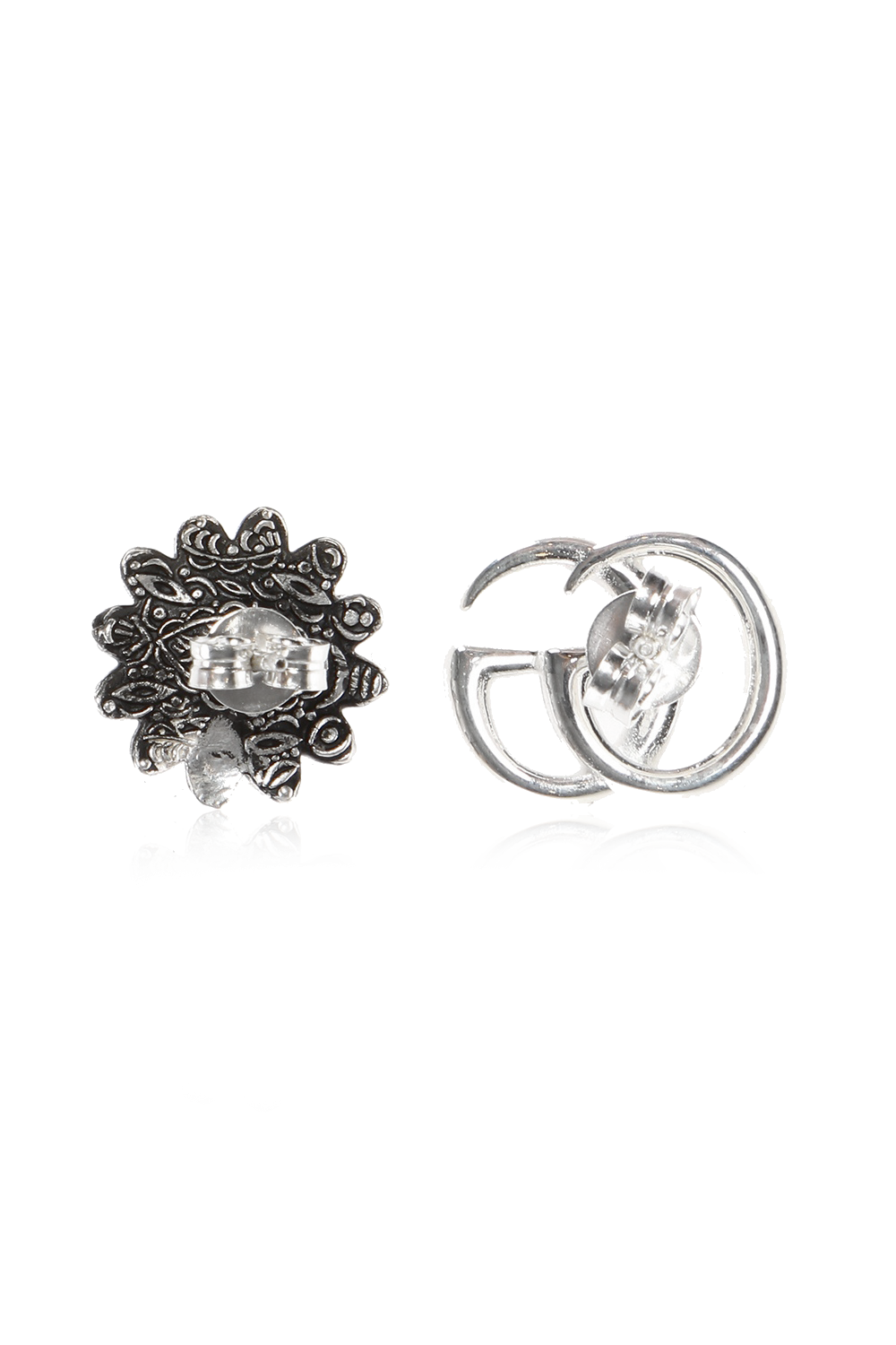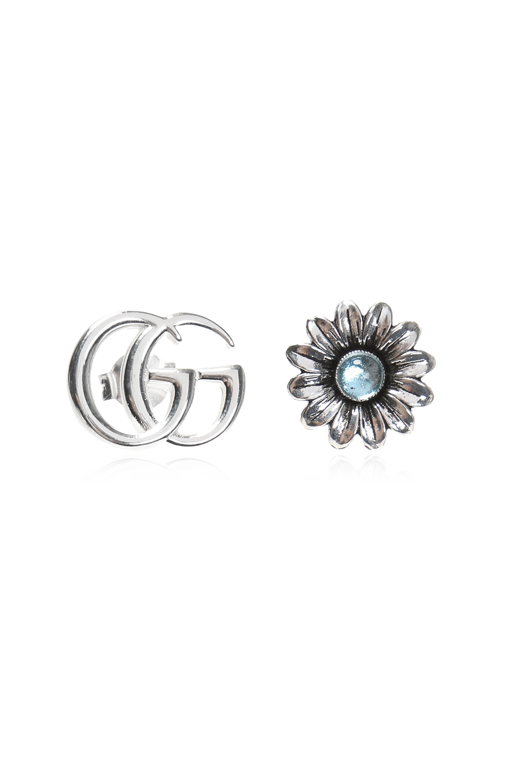 Gucci Silver earrings in the shape of a logo and a flower.