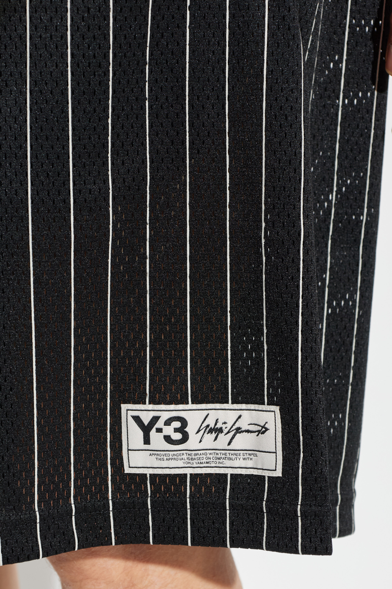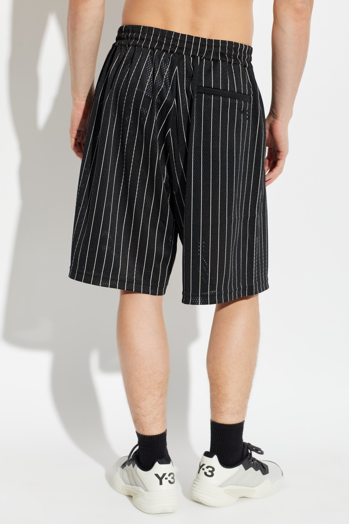 Y-3 Perforated striped-pattern shorts