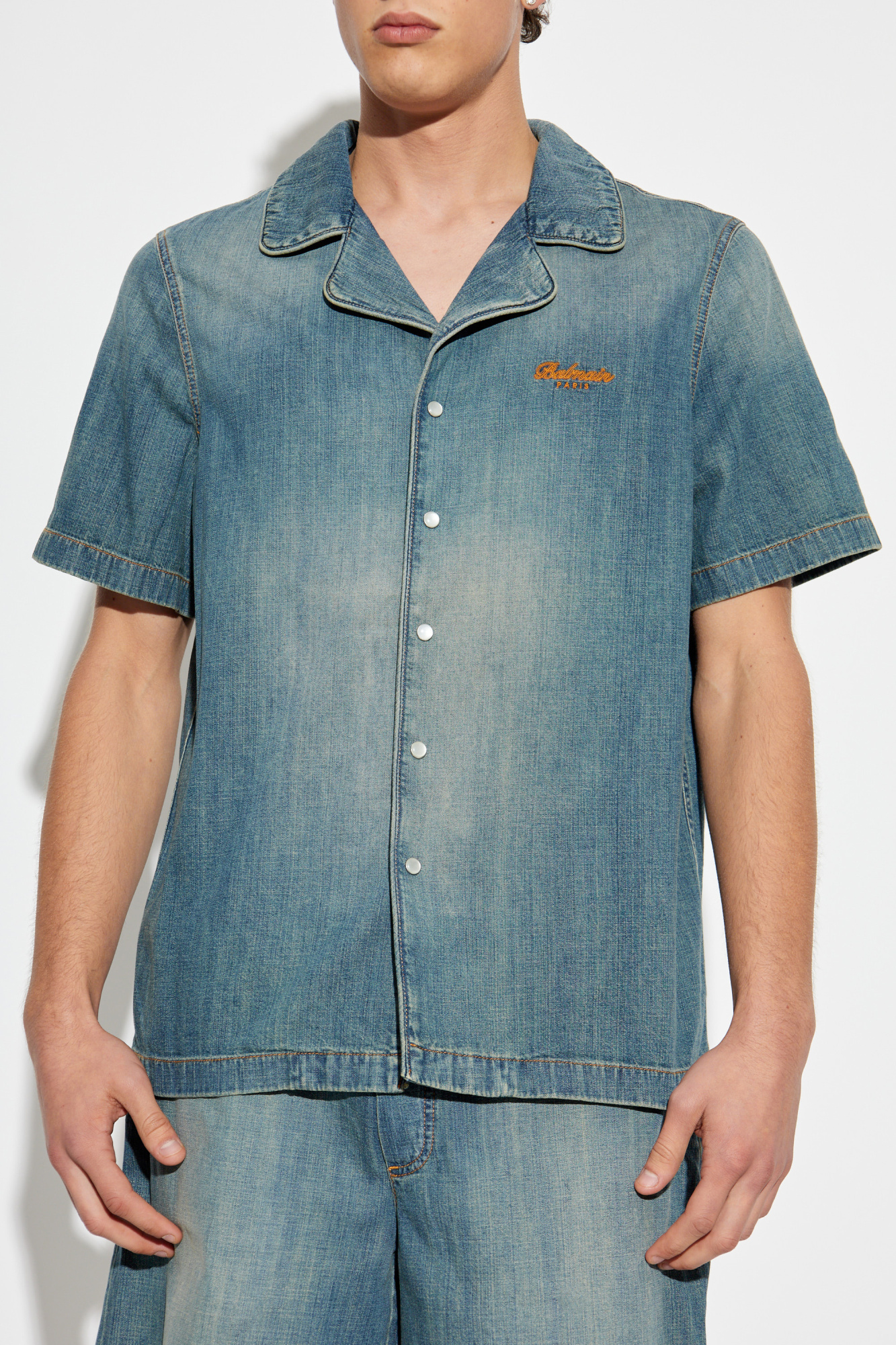 Balmain Denim shirt with short sleeves