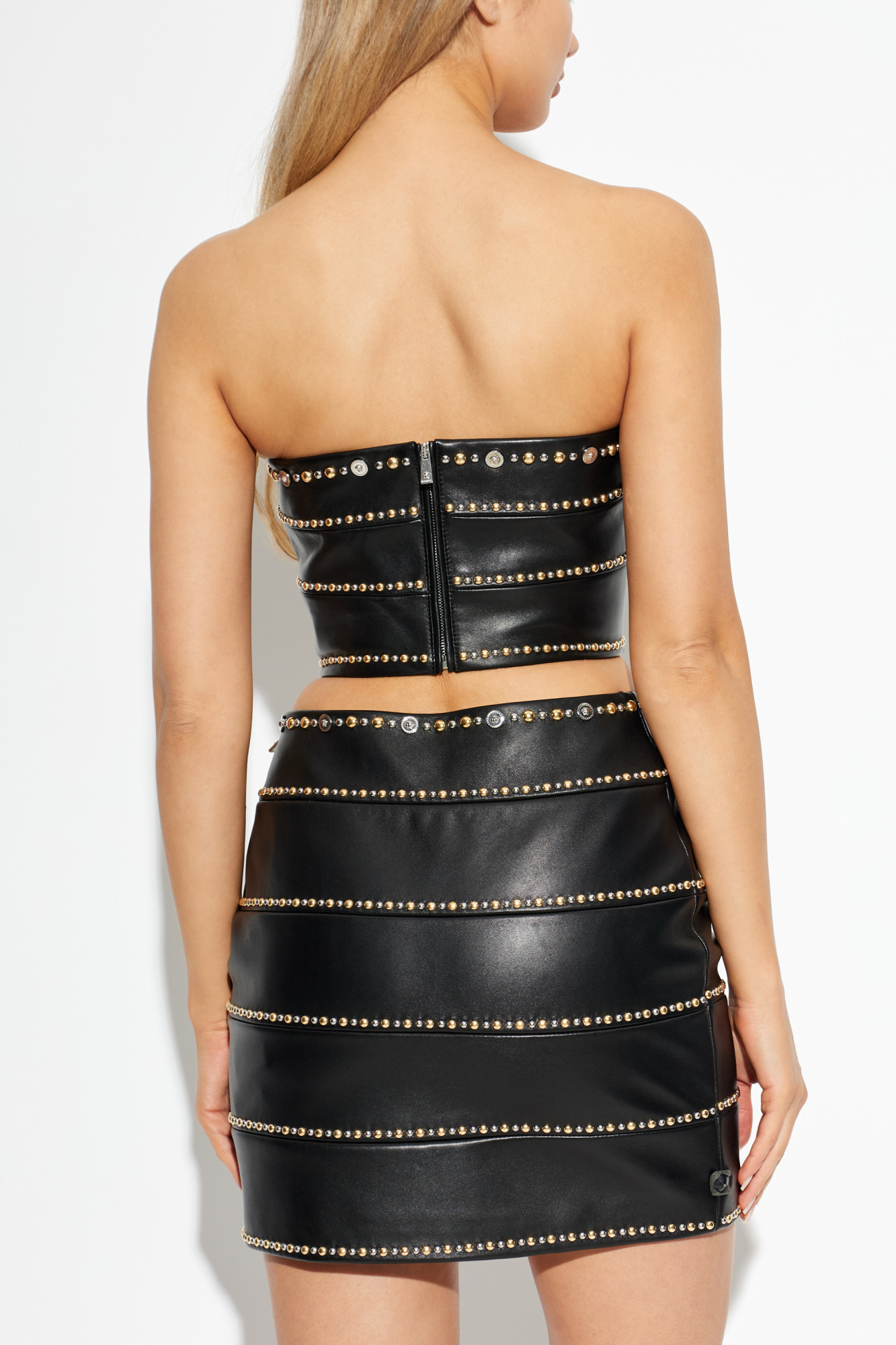 Versace Top de cuero con hombros descubiertos