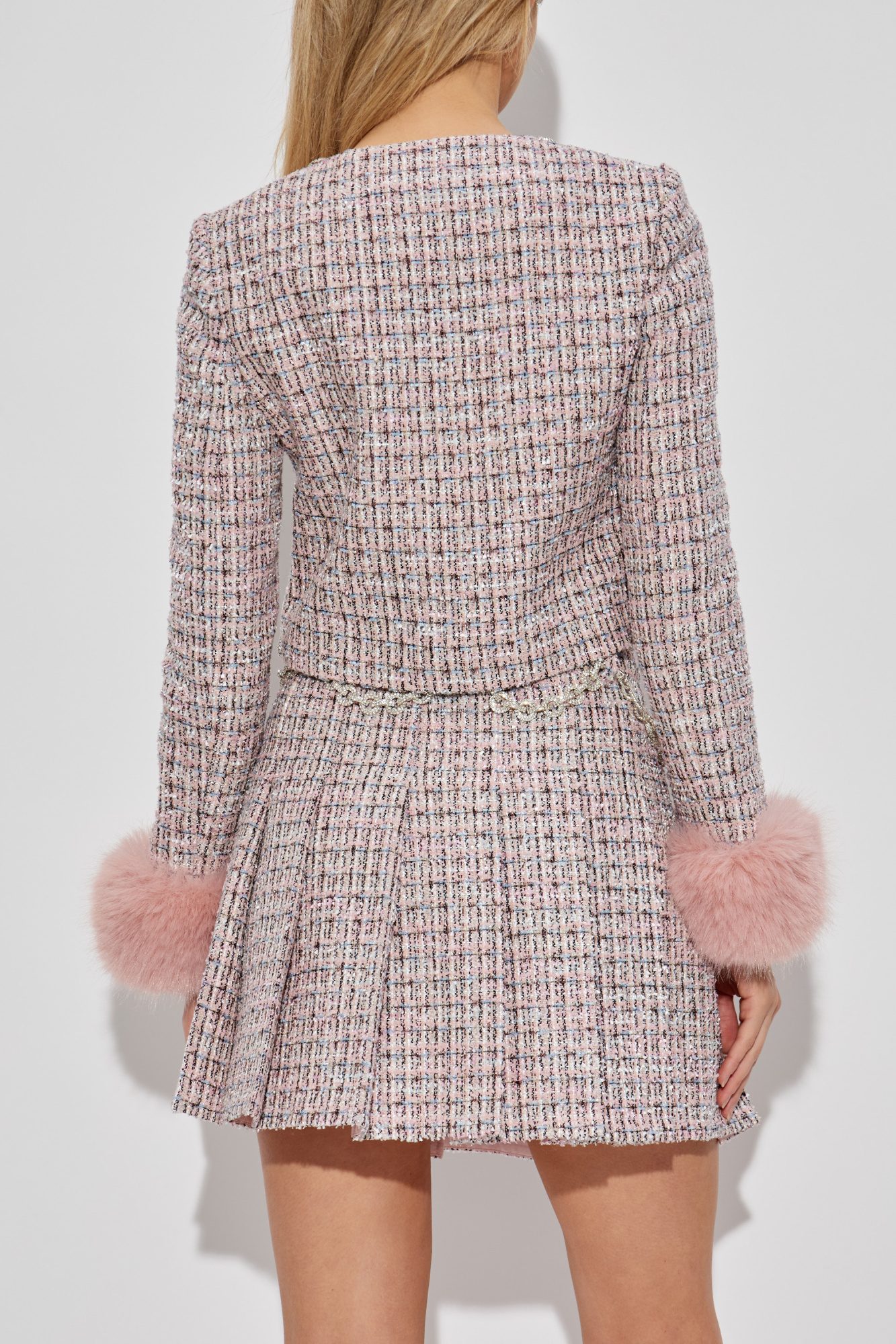 Self-Portrait Tweed blazer with faux fur