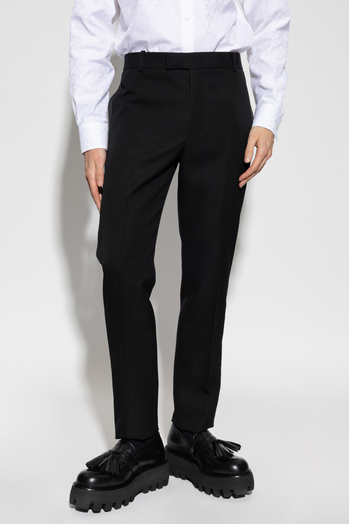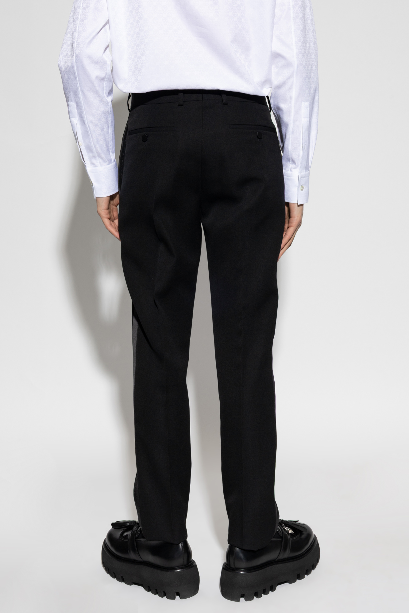 Alexander McQueen Wool trousers with silk side stripe