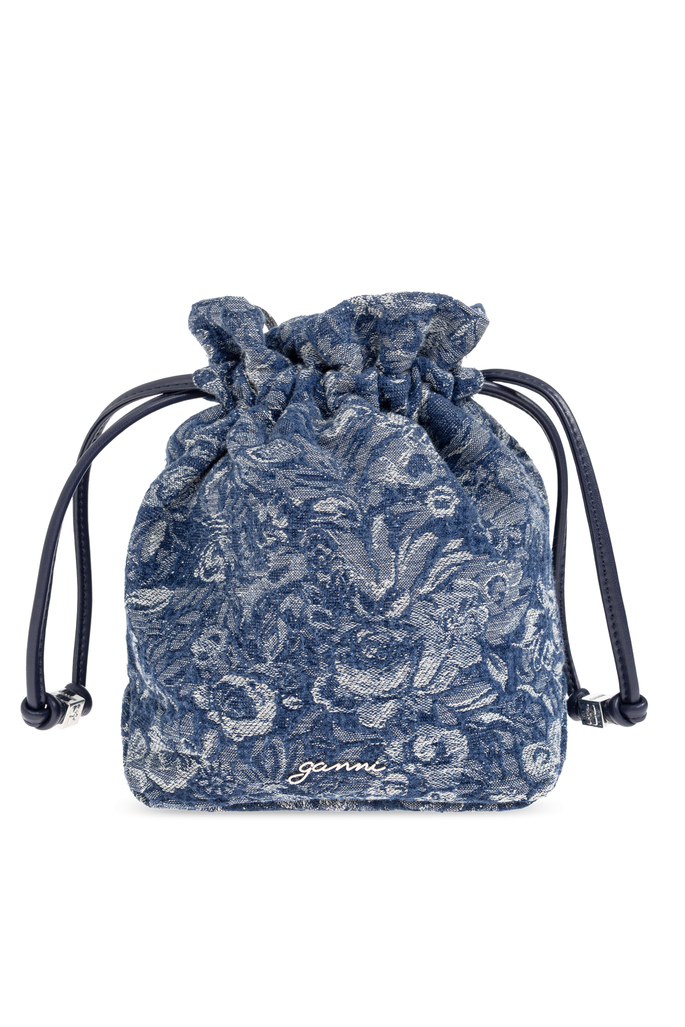 - GANNI DENIM BUM BAG WITH FLORAL MOTIF
