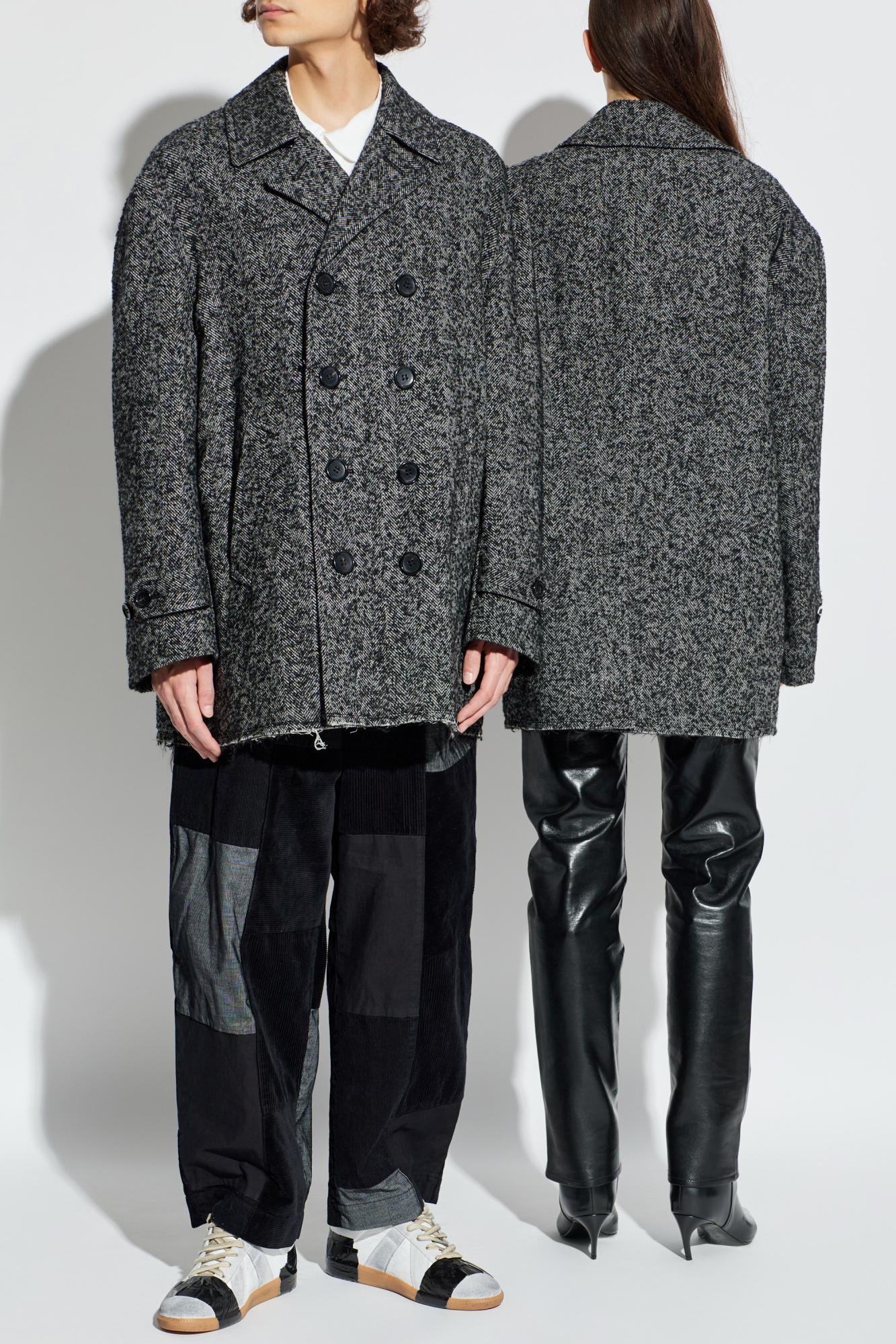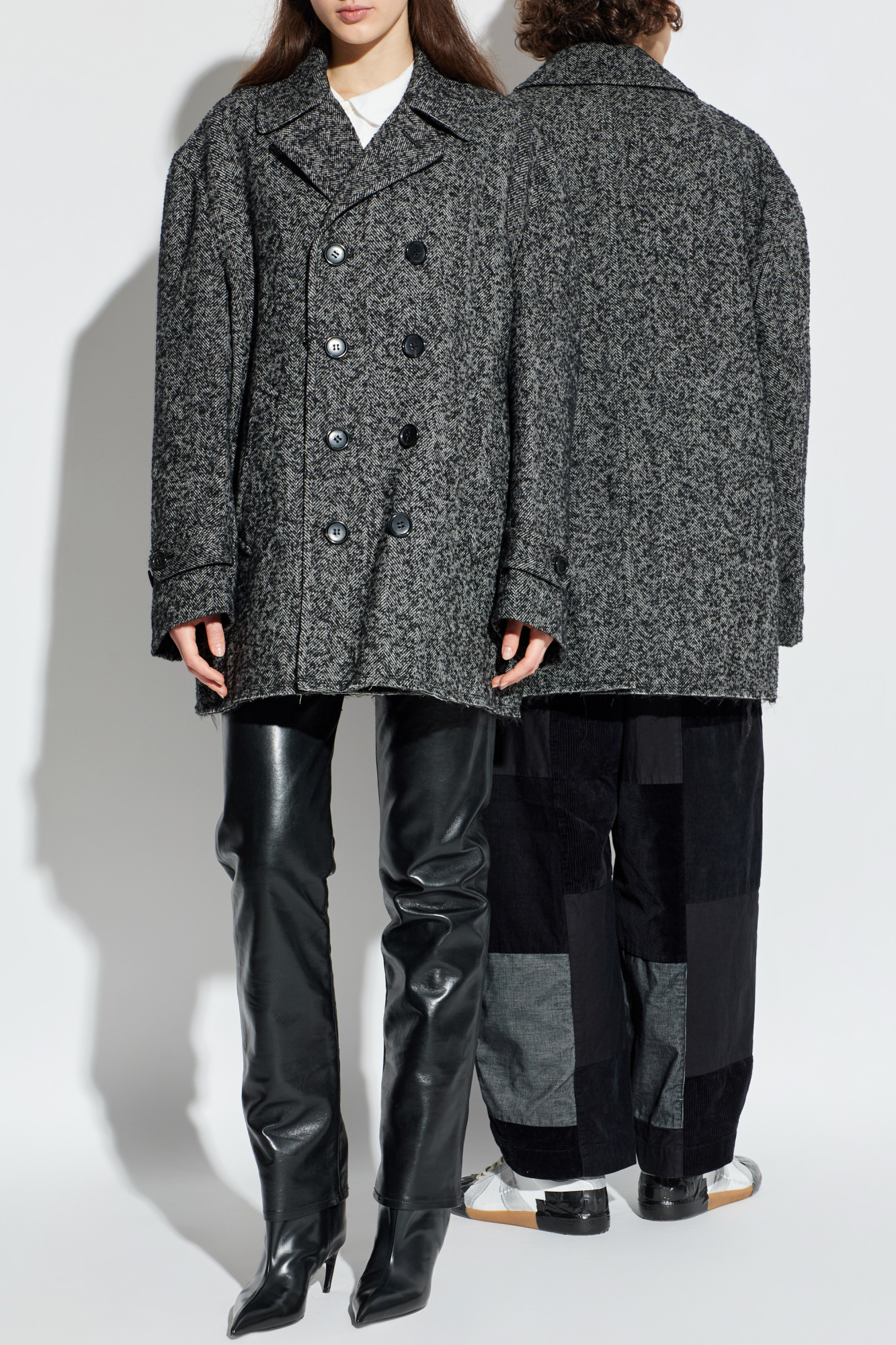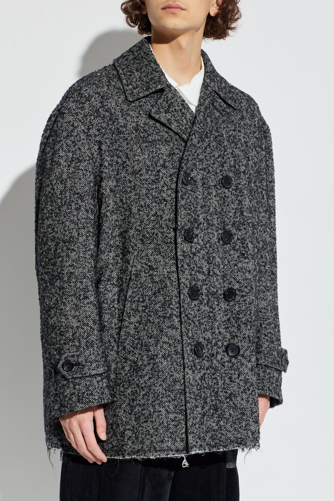Comme des Garçons Black Doppelreihiger Mantel mit Fischgrätmuster
