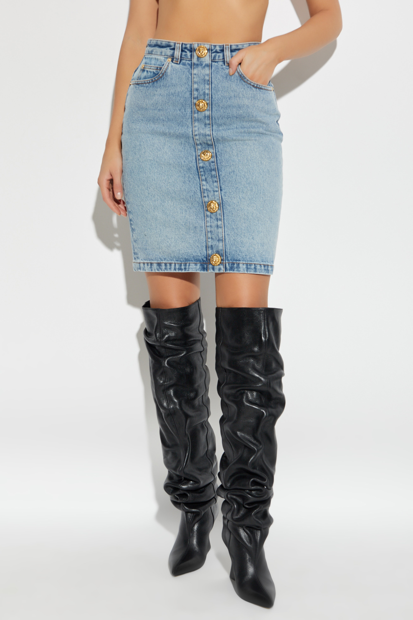 Balmain Jeansowa spódnica z dekoracyjnymi guzikami