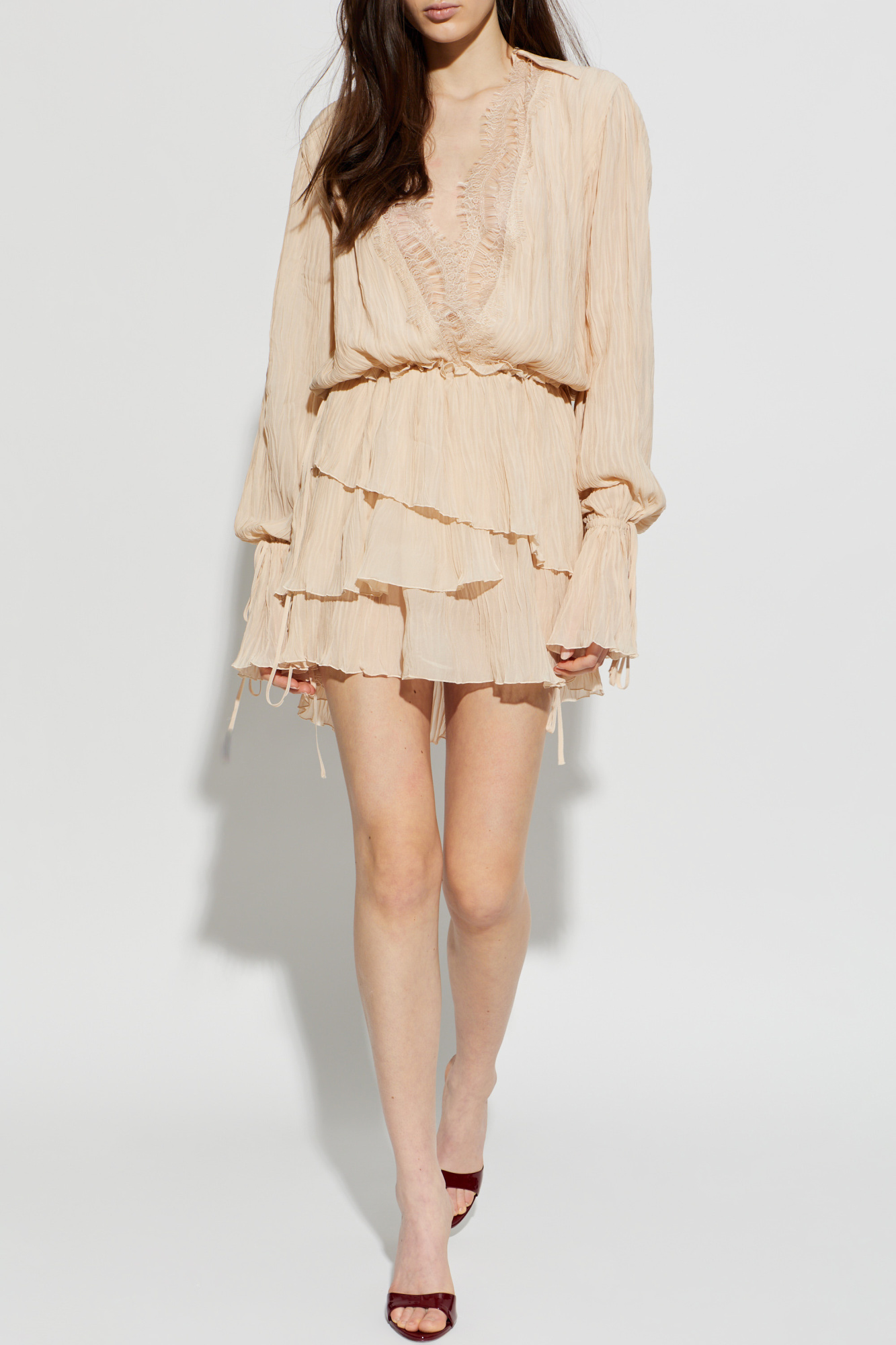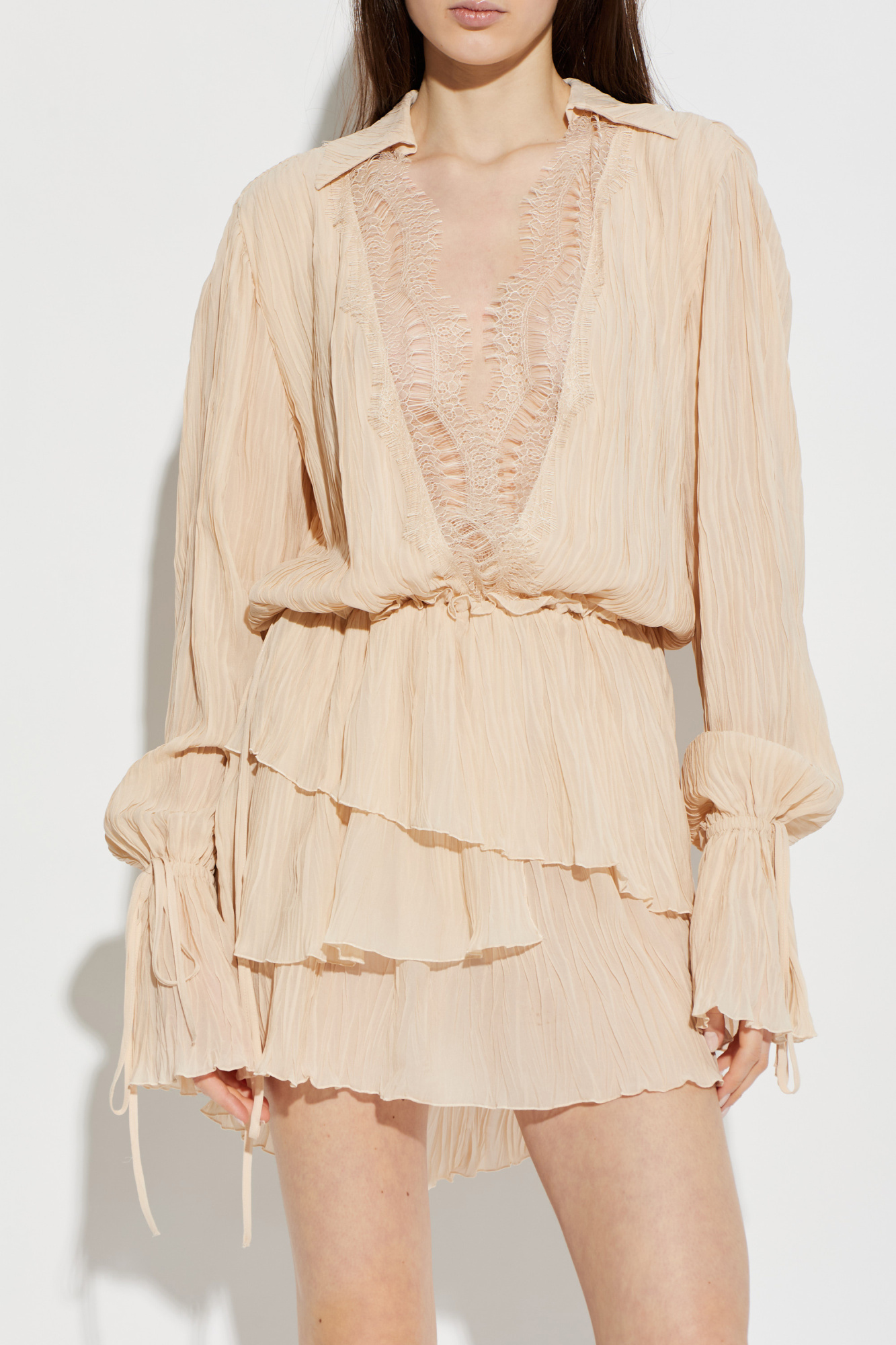 Blumarine Plisowana sukienka z koronkowymi wstawkami
